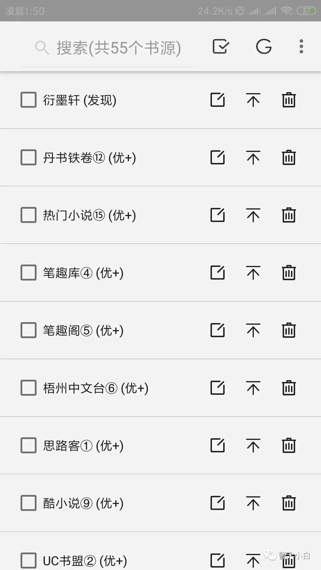下面介绍书源的设置:基本书源(55个书源,基本满足需要)、全网书源(别人整理的,共762个)