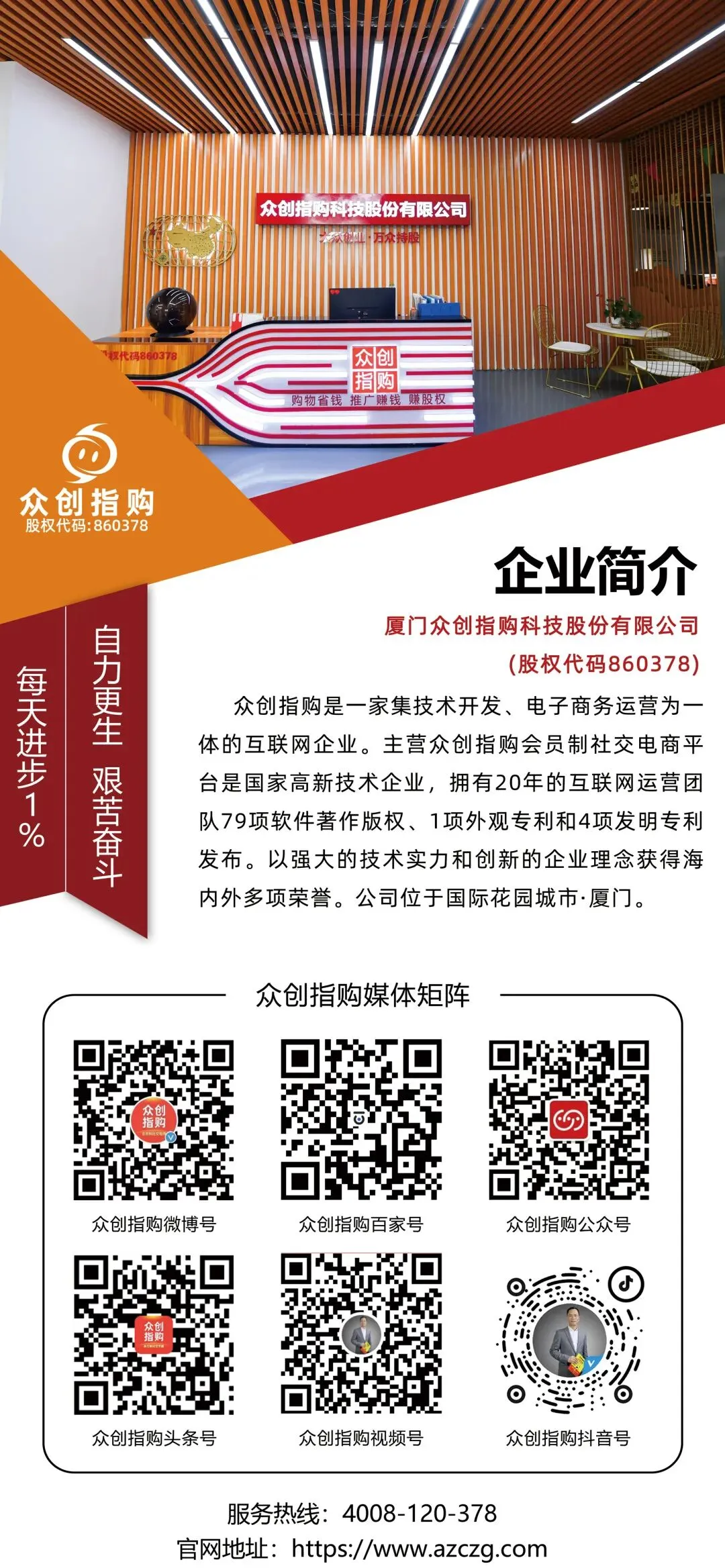 厦门众创指购科技股份有限公司,主营众创指购会员制社交电商平台是国家高新技术企业,不仅是一个可以赚取佣金的平台,更是一个提供高品质娱乐内容的舞台。我们相信,通过众创指购APP,能为您的生活带来更多的乐趣和便利。现在就加入我们,开启您的免费短剧之旅吧!众创指购,让你生活更精彩!