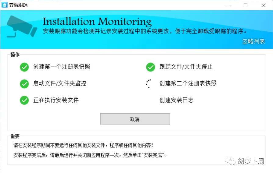 安装跟踪工具通过对比软件安装前和后系统情况,来彻底了解某个软件的安装后台动作,以便后续能够彻底卸载这款软件。