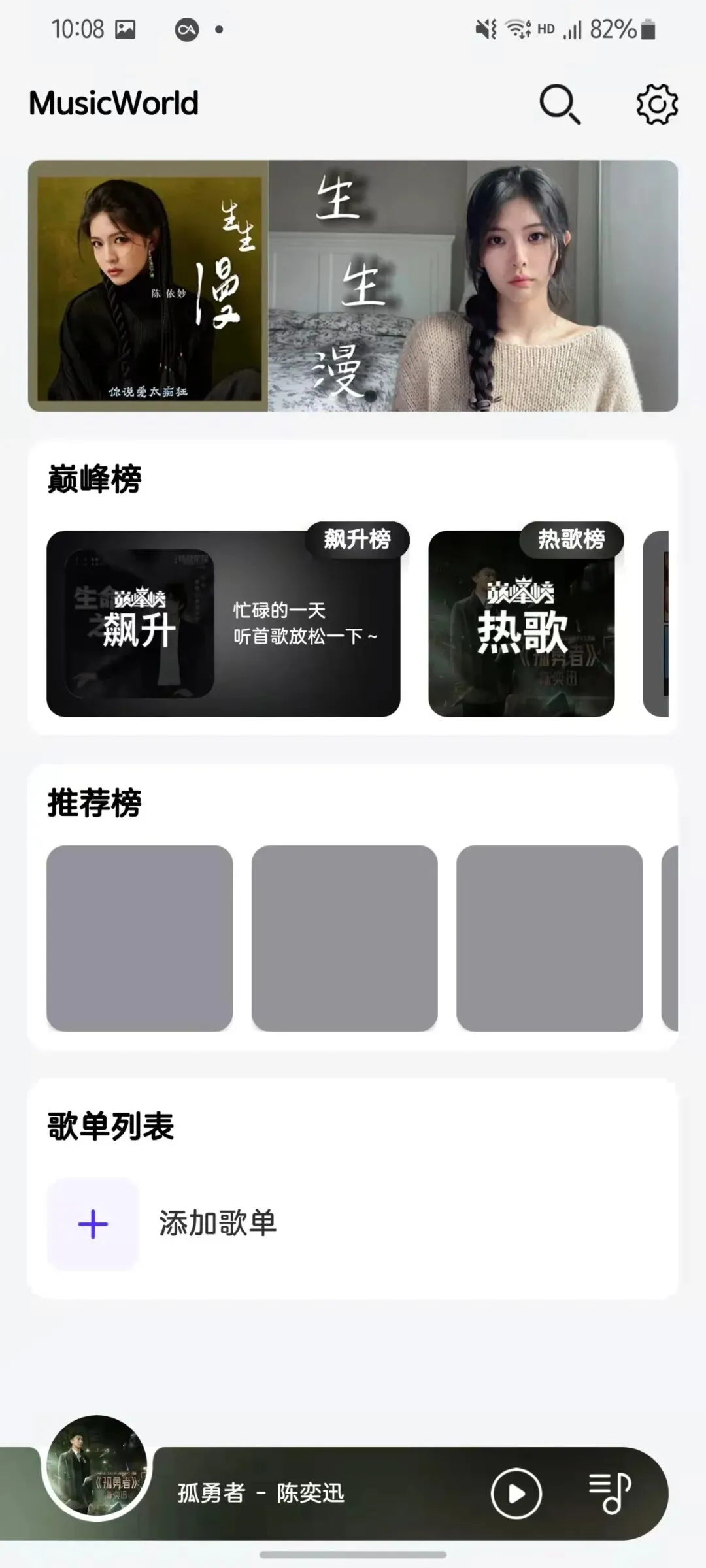 很少给大家推荐听歌的软件喔!今天给大家安排一个高质量的——音乐世界,这个软件里面有全网音乐资源,不需要担心版权问题,而且加载速度嘎嘎快,没有任何广告,所有音乐都可以下载无损音质,就是一个很纯粹的音乐软件,就很nice!推荐推荐!
