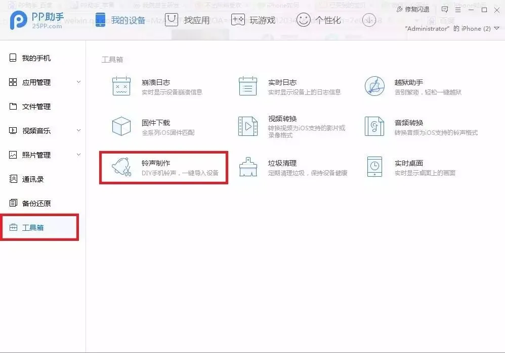 3.先点击左边菜单栏的“工具箱”,再点击“铃声制作”。