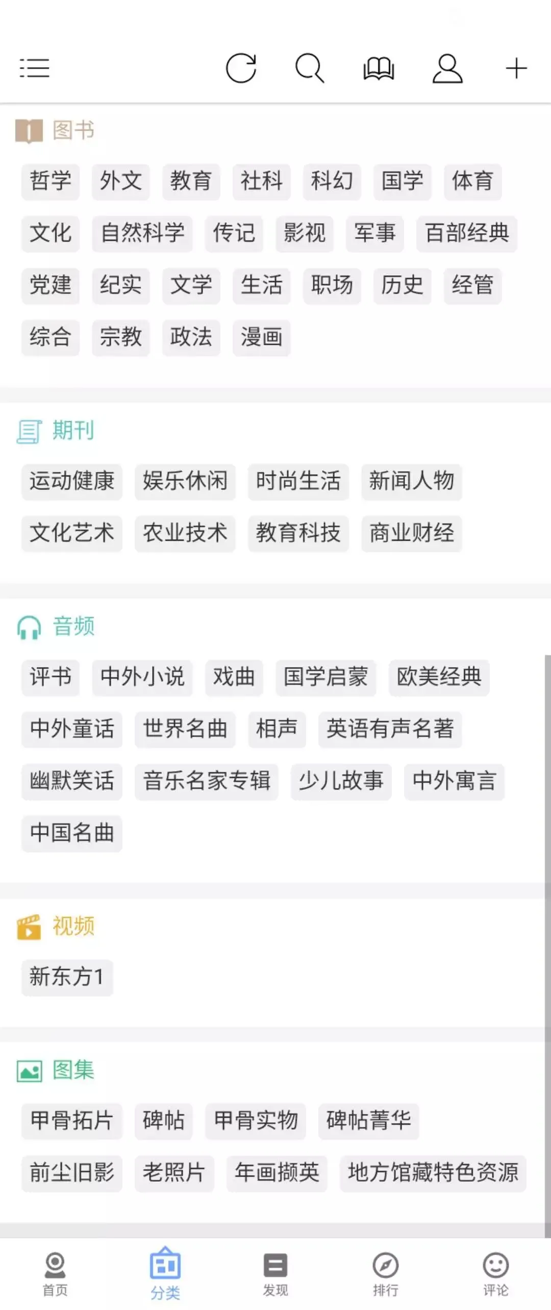 可以看到,图书、期刊、报纸、名著、听书的资源全部都是免费的,种类特别齐全,可以满足大部分人的需要。