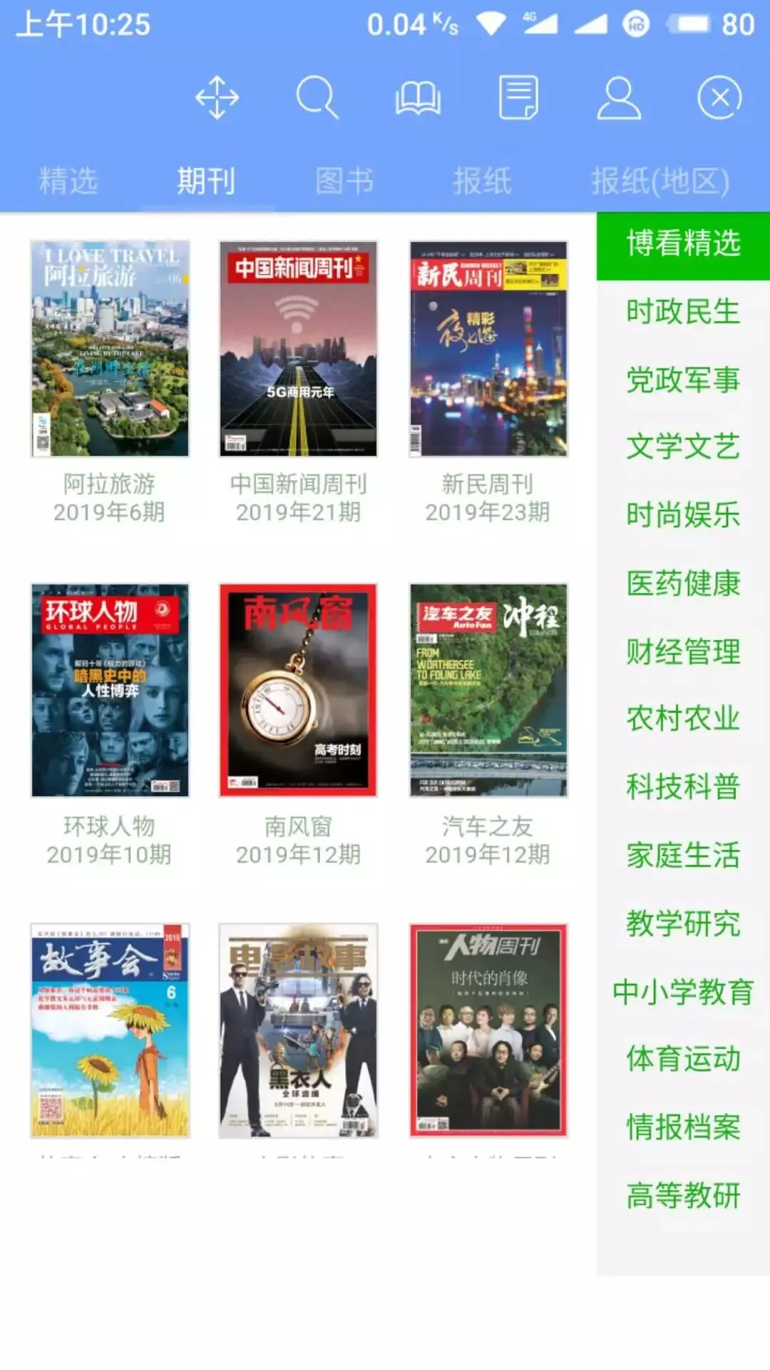 期刊分类:运动健康、娱乐休闲、时尚生活、新闻人物、文化艺术、农业技术、教育科技、商业财经