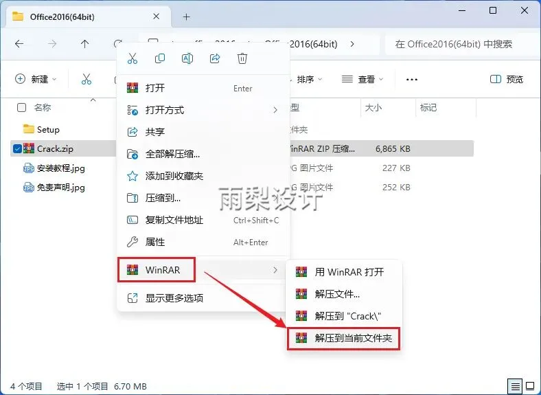 9.返回安装包;右键【Crack.rar】选择【解压到当前文件夹】