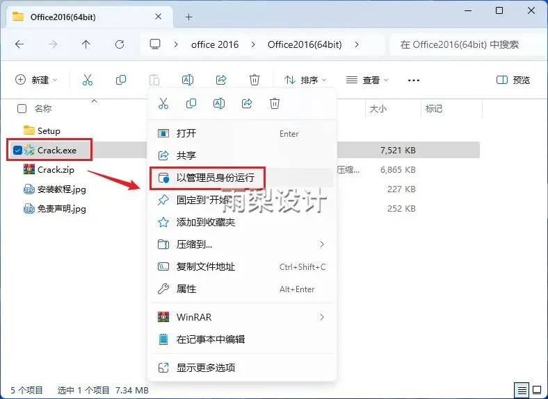 10.右键【Crack.exe】选择【以管理员身份运行】