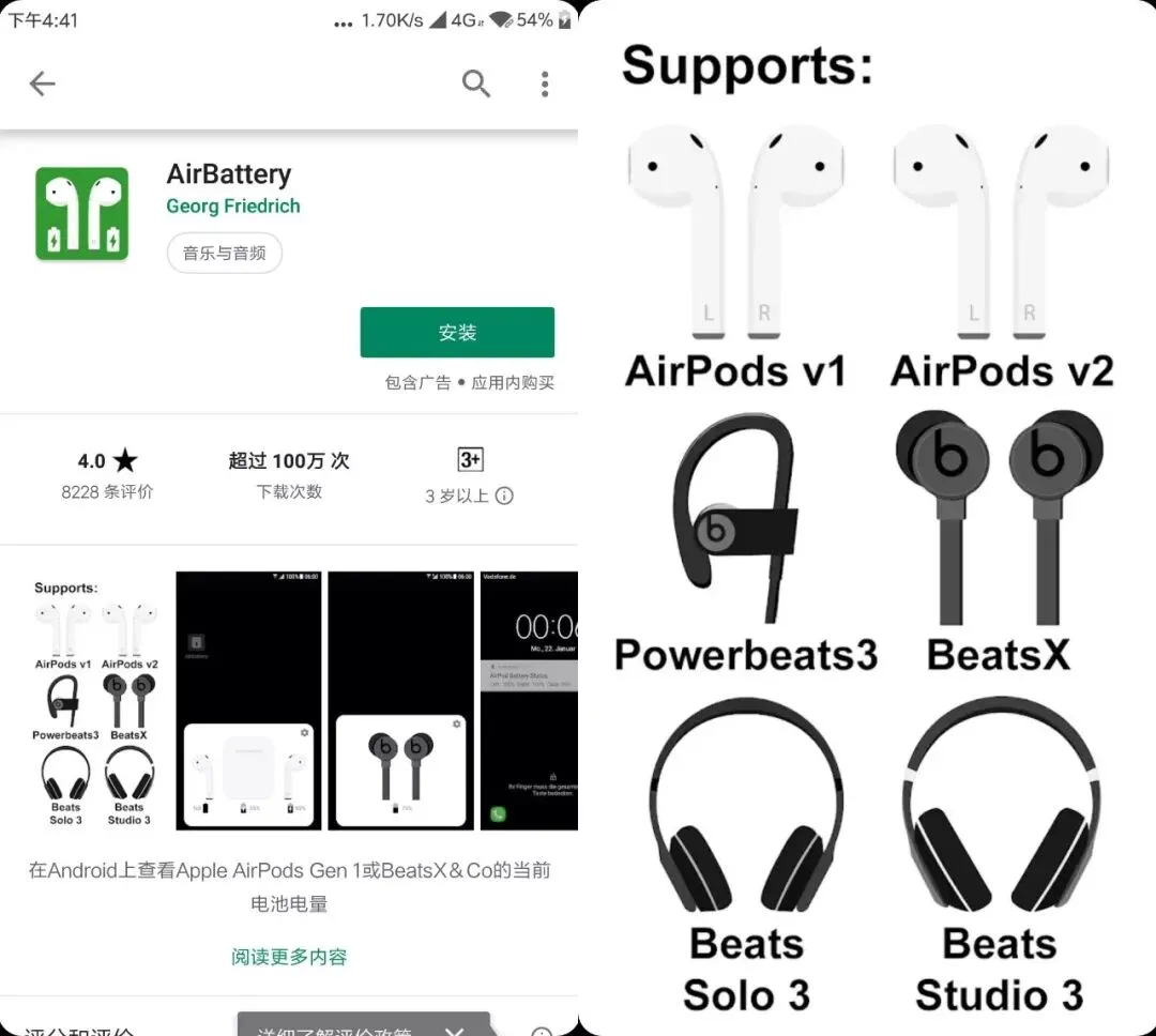 谷歌商店里另一款,显示耳机电量的App,也是蛮好用的