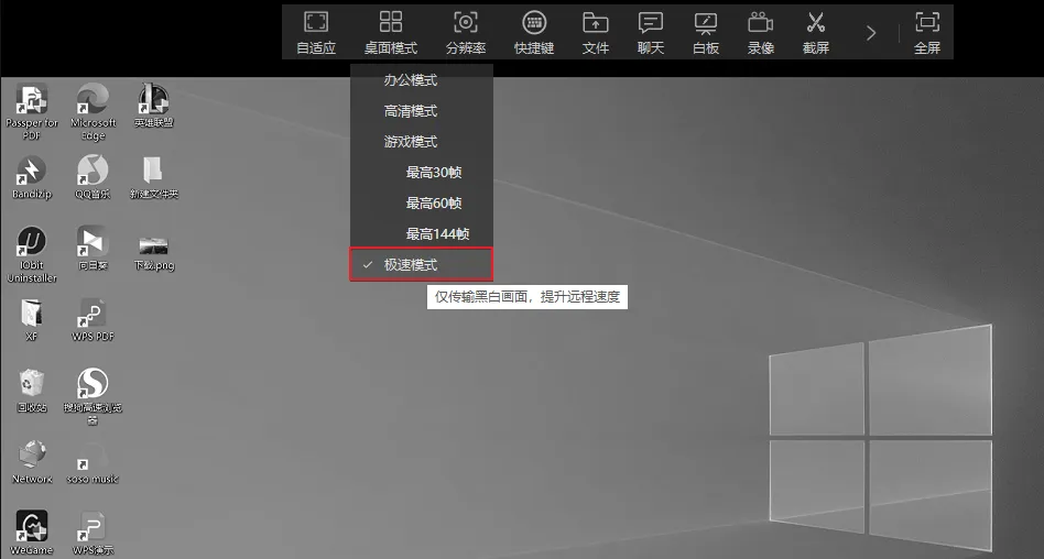 极限模式:如果你的电脑性能很差、网络状况不佳,那么建议试试极限模式,这个模式只会传输黑白画面,可以大幅度提升远程速度,用来应急很不错。