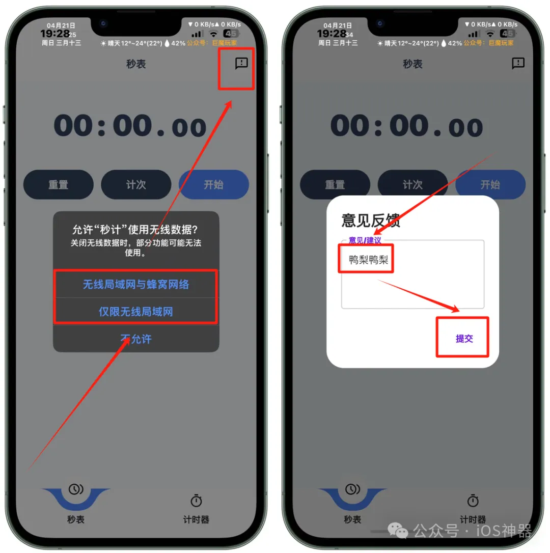 点击:右上角 意见反馈 图标