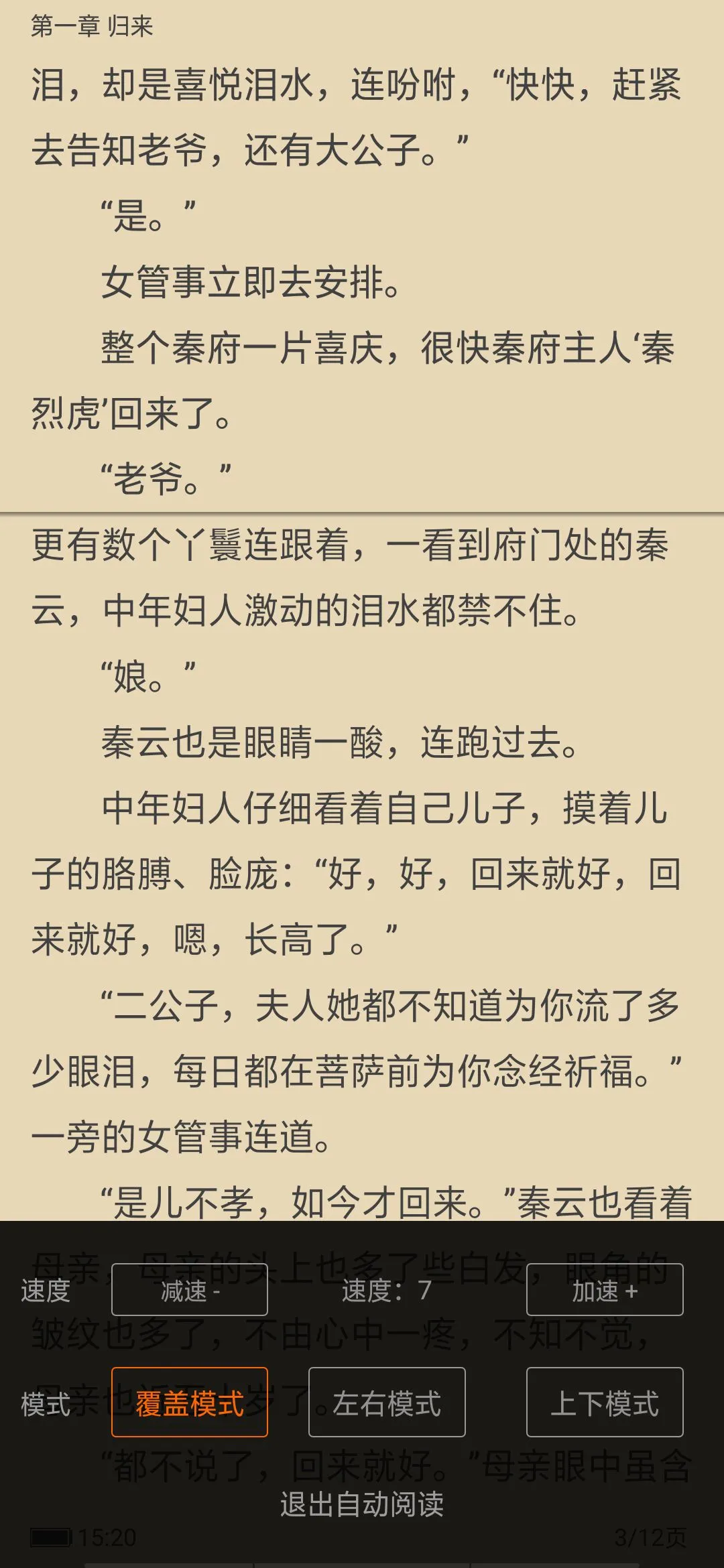 自动阅读:覆盖、左右、上下随意切换。翻页累了,来试试自动阅读吧