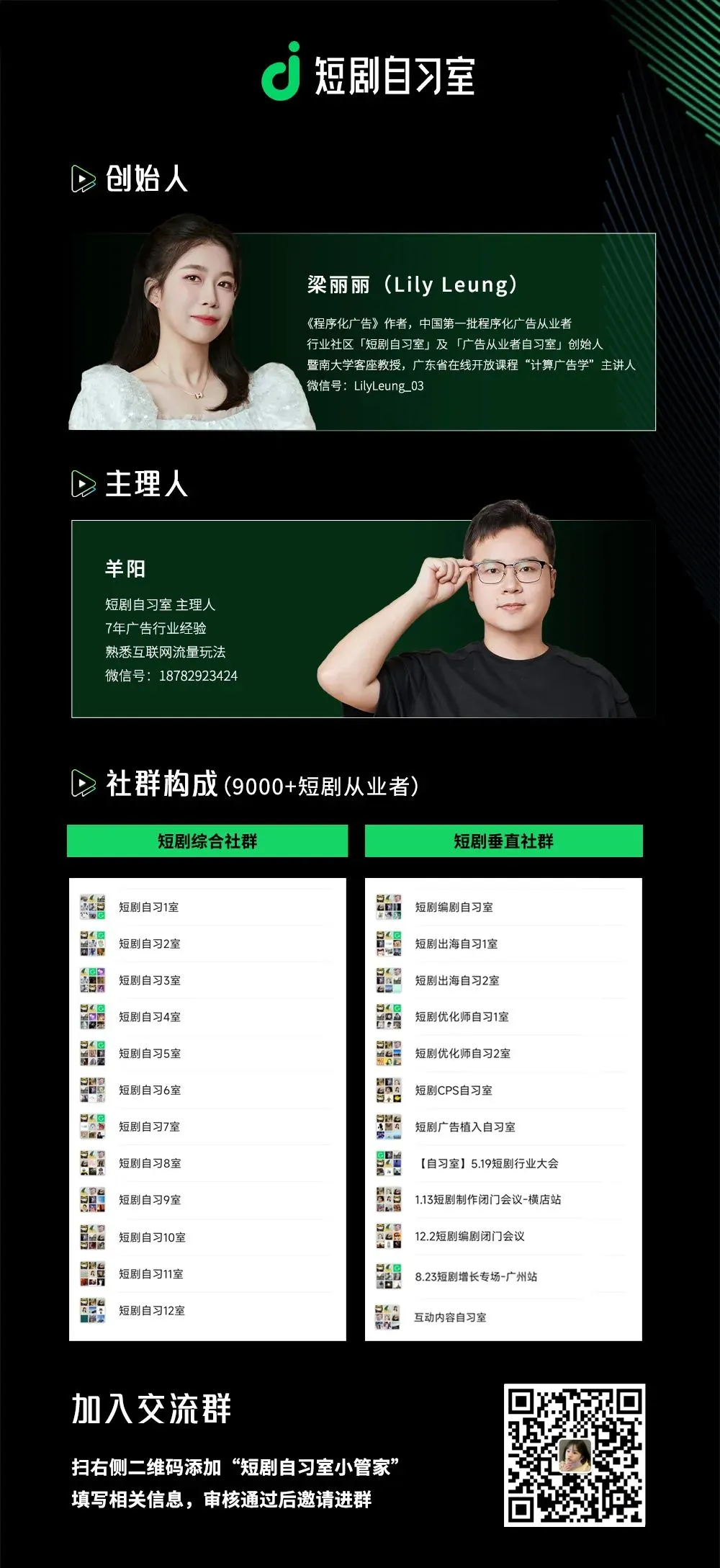 PS:如需加入 短剧微信群, 请 添加小管家微信(LilyLeung_111) 填写信息,审核后进群。