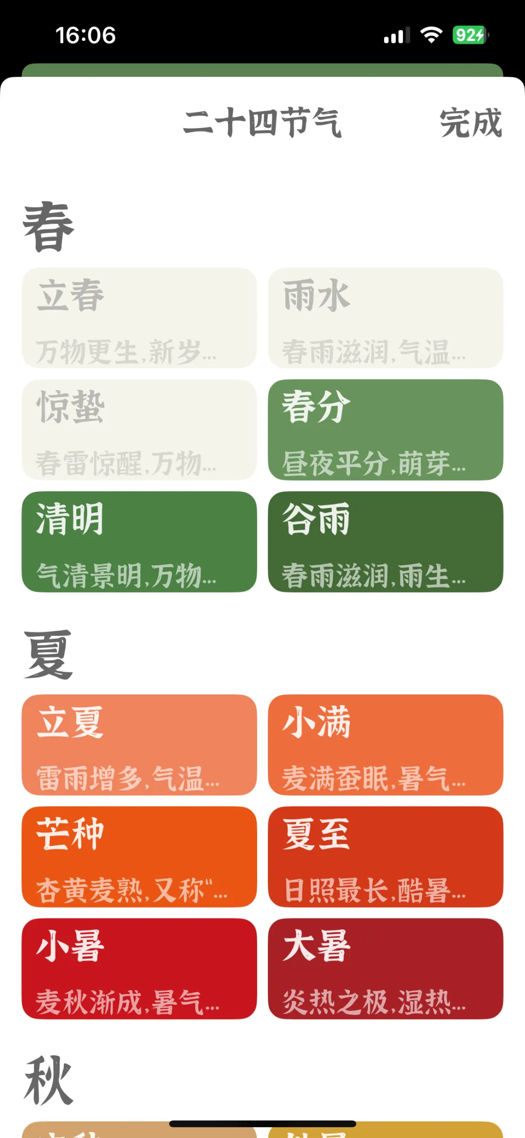 而这款APP没有其他复杂的功能,就是看节气,告诉你现在处于哪个时节。