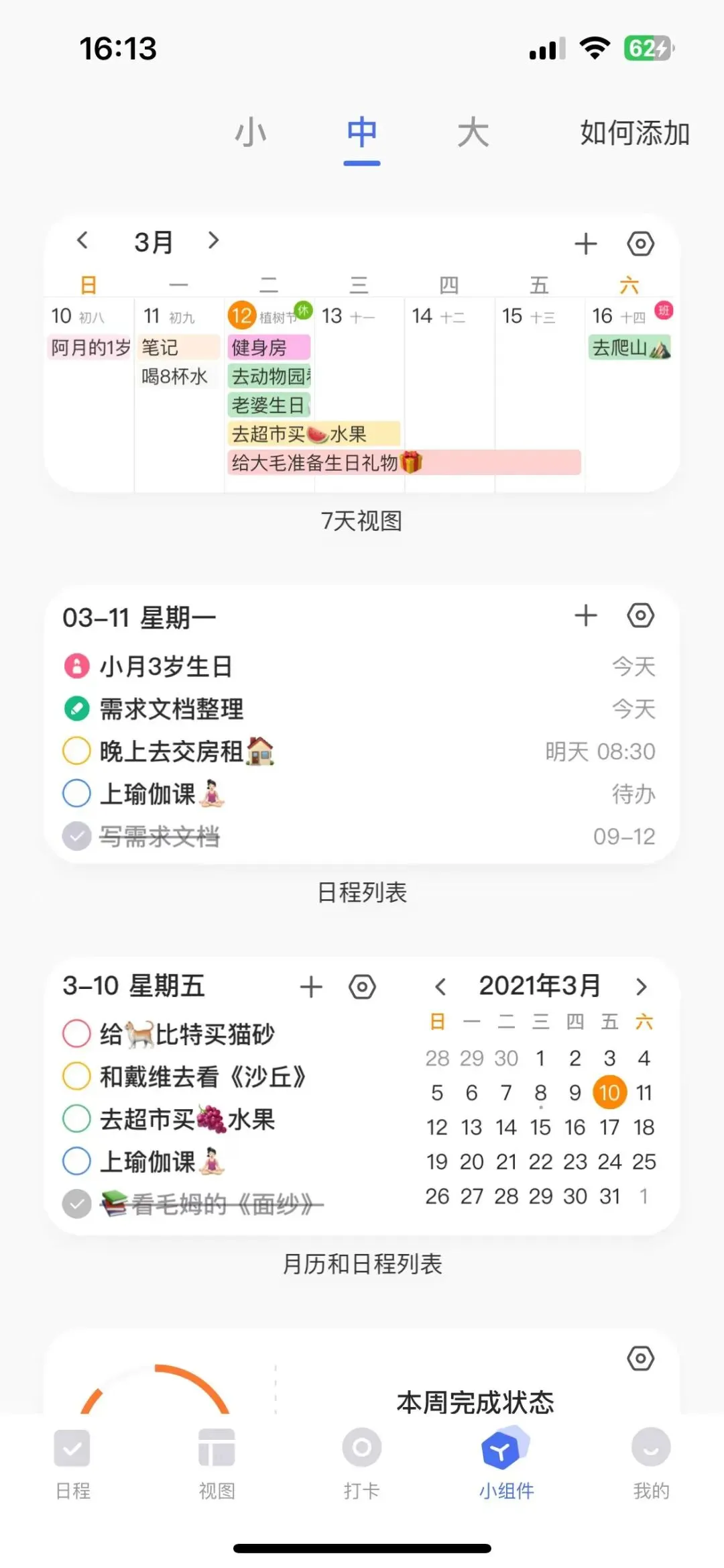我其实还蛮丢三落四的,所以我在手机主页面放了这个app大号的组件,上面能显示我记录过的今天要做的事,每次看手机,都能看到这个列表,有效防止我忘记今天的某项计划、忘带某样东西。