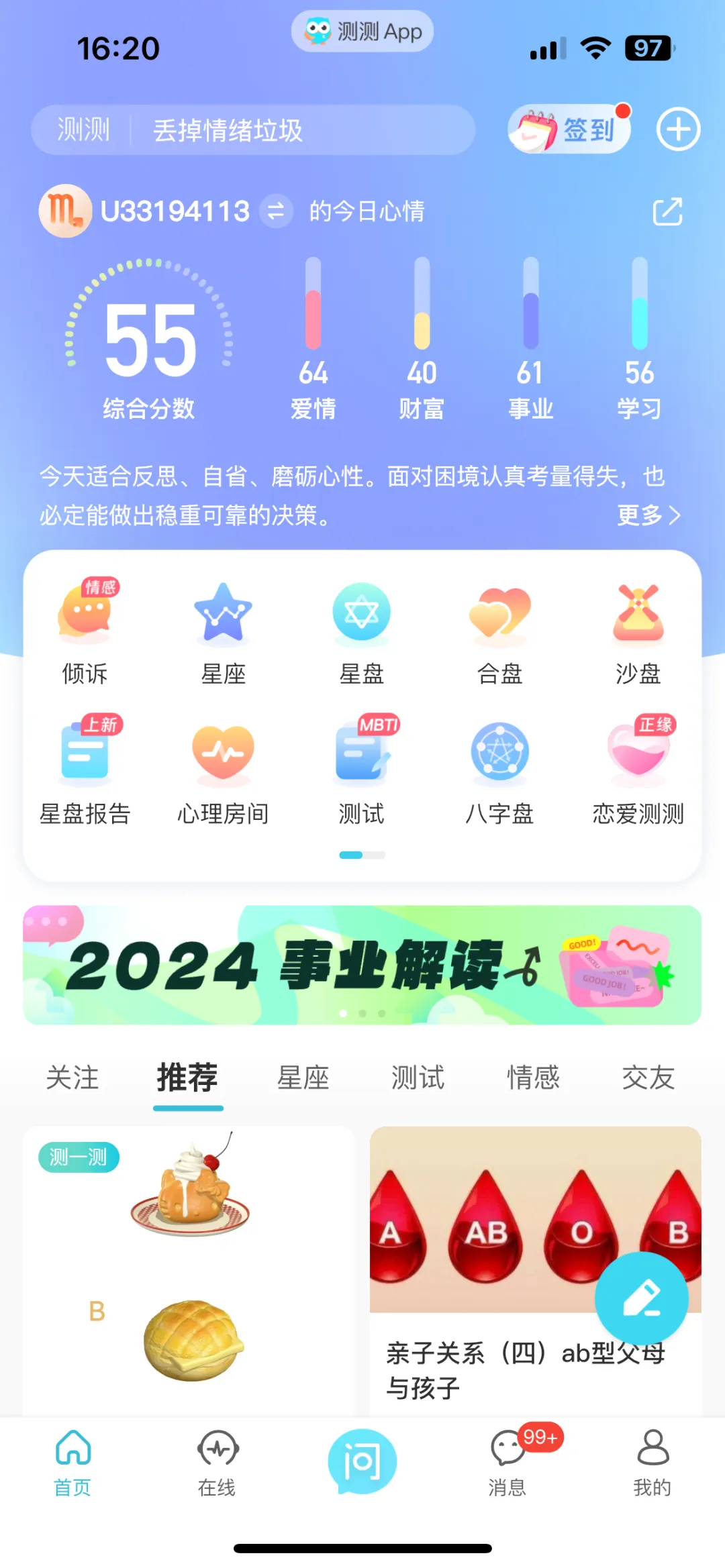 除了花钱私占,测测上会有一些系统自带的免费解析,虽然不能保证完全准确,但毕竟是根据个人星盘来的,还是比大众解析更有针对性。