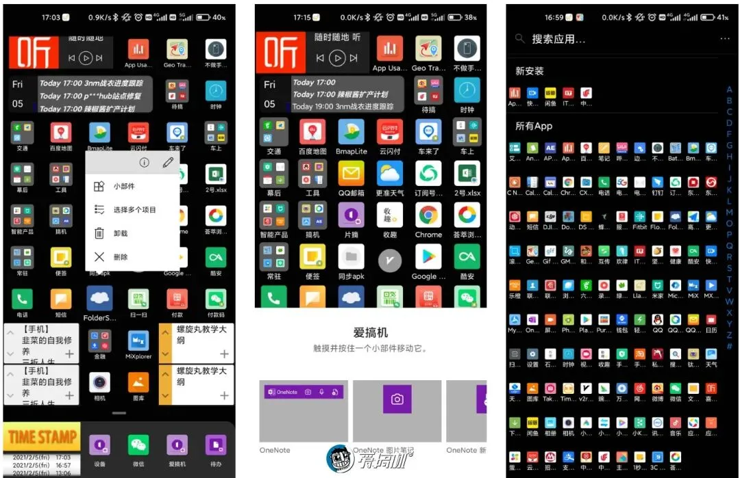 选择微软桌面的原因,是它能自动给新装app生成桌面图标、能自定义图标布局(最高12列12行)、桌面插件的大小能半格精调、长按app能快速跳转应用详情和桌面插件列表。