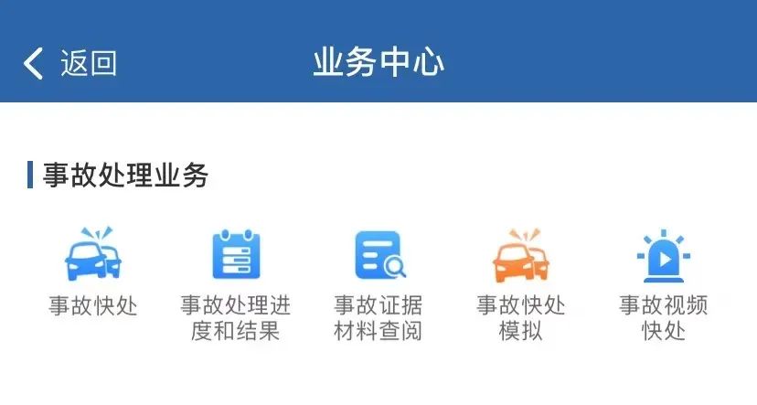 事故快处、事故处理进度和结果、事故证据材料查阅、事故快处模拟、事故视频快处等。