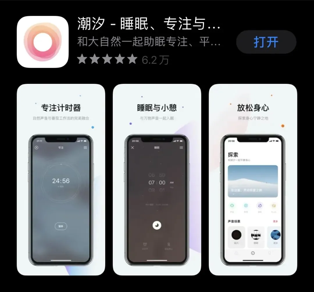 潮汐利用自然界里的白噪音,可以使你减少焦虑和压力,保持专注平静,冥想片刻放松思绪。在这里主要是想介绍它的“呼吸”功能,每天早晨醒来,或是感到疲惫的时候跟着一起练几组呼气和吸气来缓解疲惫,提神醒脑,提高你的学习&工作专注力。