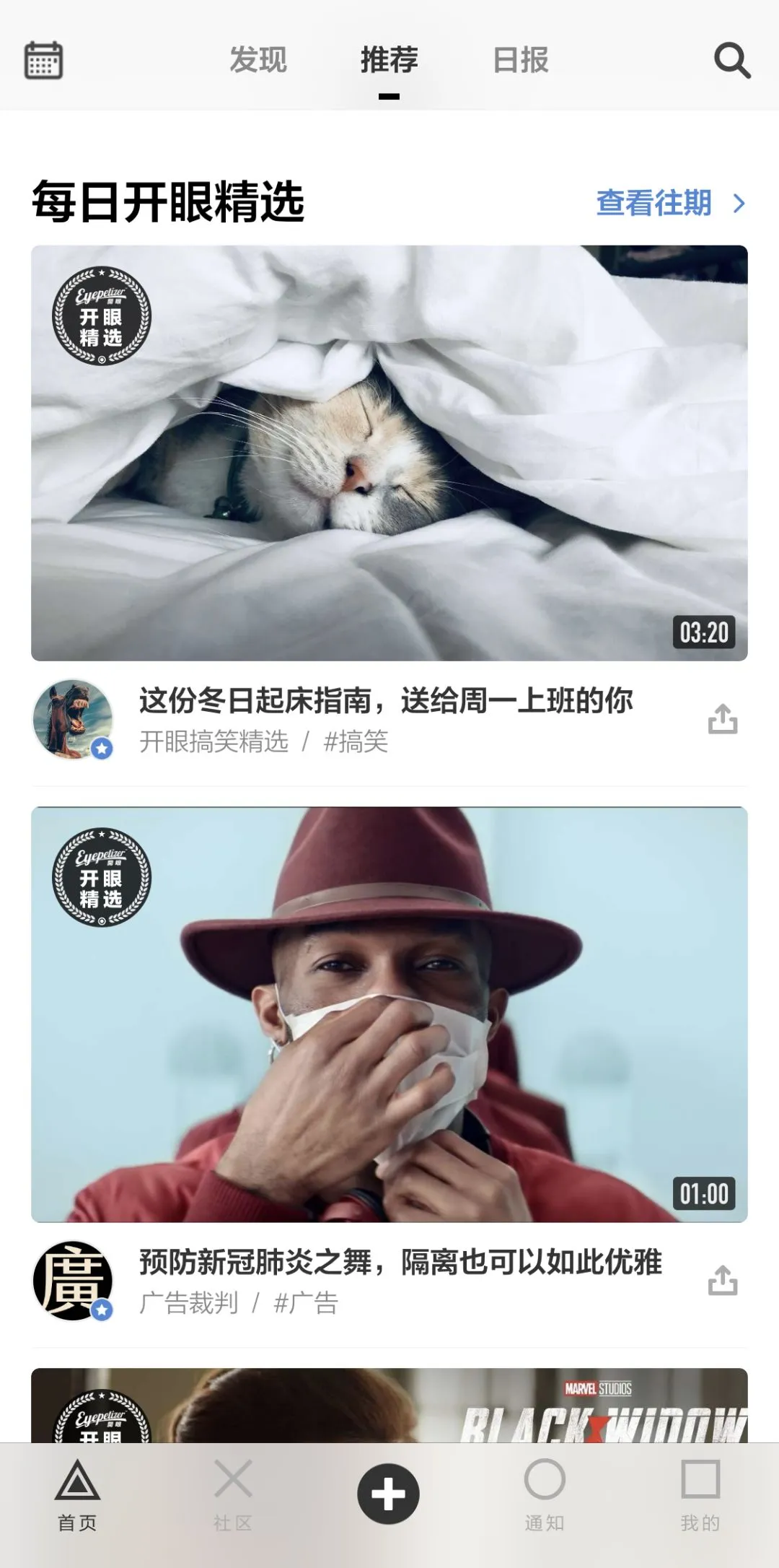 同样是刷短视频,天天看抖音里面的小哥哥小姐姐腻歪了,不如刷刷开眼APP,里面都是精选高质量的视频内容:最新资讯、创意、艺术、音乐、干货以及技能类的等等,编辑每天精选3个优质短视频,让你天天get新知识!度三自从刷了开眼之后,像它的名字一样,让我打开了新世界的大门,大开眼界~