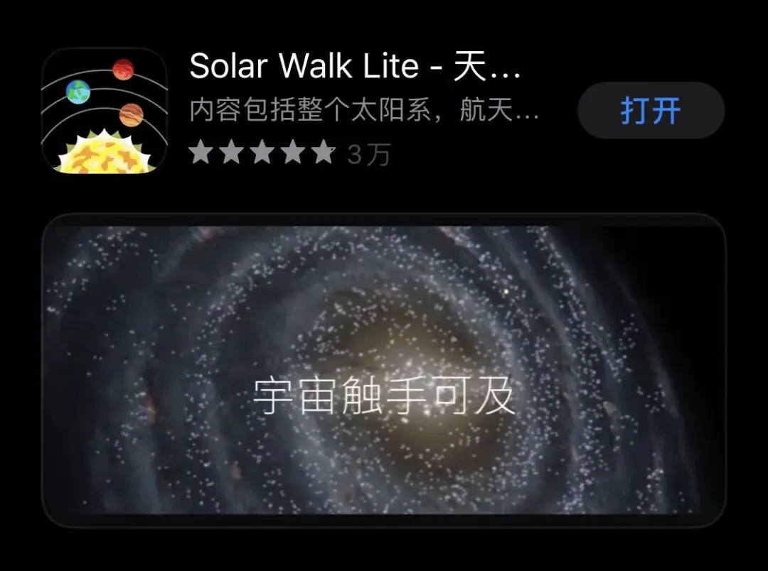 Solar Walk这款APP真的太美了,堪称3D天文馆!大家可以观察到各大行星的真实运行轨迹。里面的三维模型十分精致,配上音乐,仿佛漫游在太空~而且还收录了太阳系内大量天体的资料,可以点击查看天体各种知识、内部构造、大气构成、演化历程等信息,适合喜欢天文学的小伙伴们。