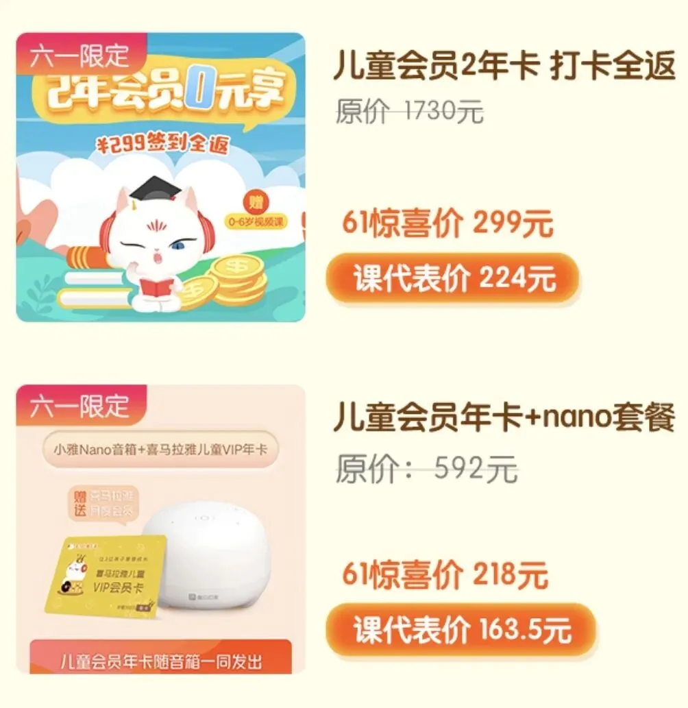 喜马拉雅的年卡价格不菲,目前其他渠道有两年打卡返还会员费用的活动,在刚刚过去的六一儿童节,年卡返还活动是这样的: