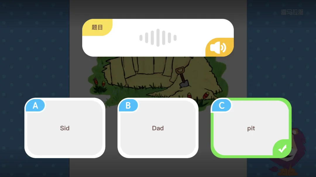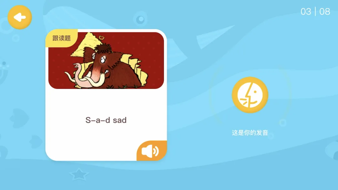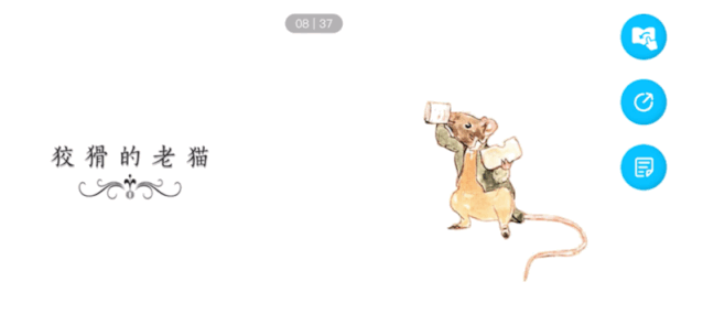 《大猫分级阅读课》这门课做得很细致,一本书会讲4-5节课,分为故事、拼读讲解,口语练习、原声和童谣几个固定模块,课上有不少鼓励孩子听读的环节,进行AI打分。