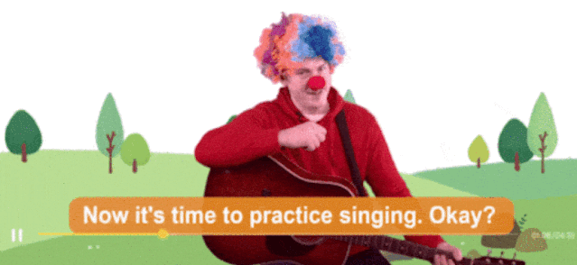 吉他伴奏并做口型,小朋友跟唱: