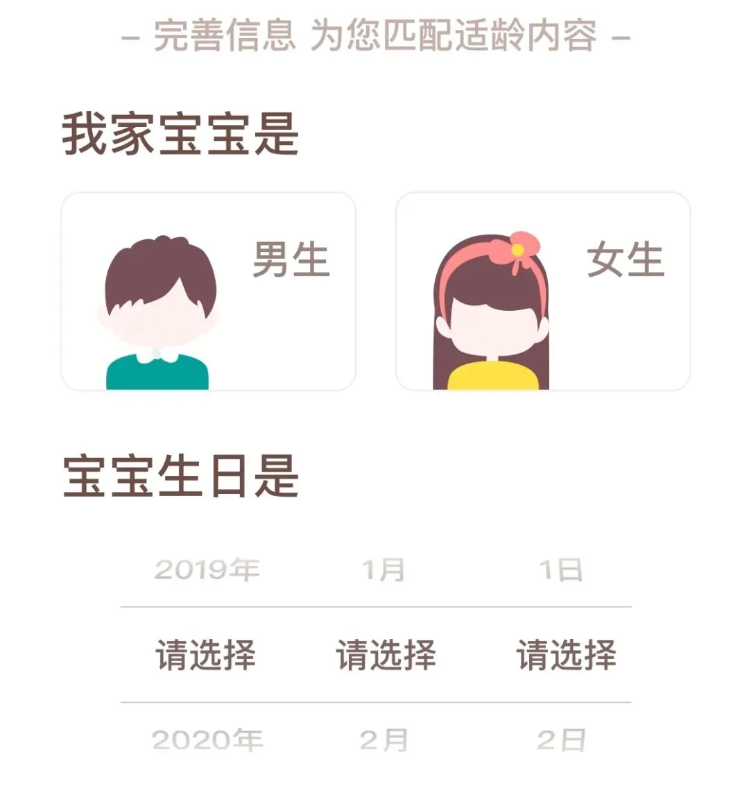注册时可选择备注孩子的性别及年龄: