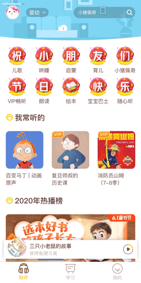 为了方便家长能更好地在海量“好声音”中进行挑选,喜马拉雅儿童版APP对所有的节目从内容、表现形式、年龄及功能设置上进行了详细的分类,从而能系统、准确地为孩子推荐有趣、适龄的节目内容。