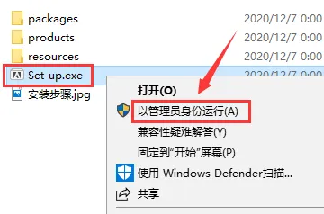 3.选中【Set-up.exe】可执行文件,鼠标右击选择【以管理员身份运行】。