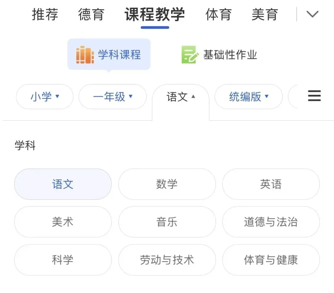 “体育、美育、劳动教育”这些就不说了,同样是有一些视频课程。