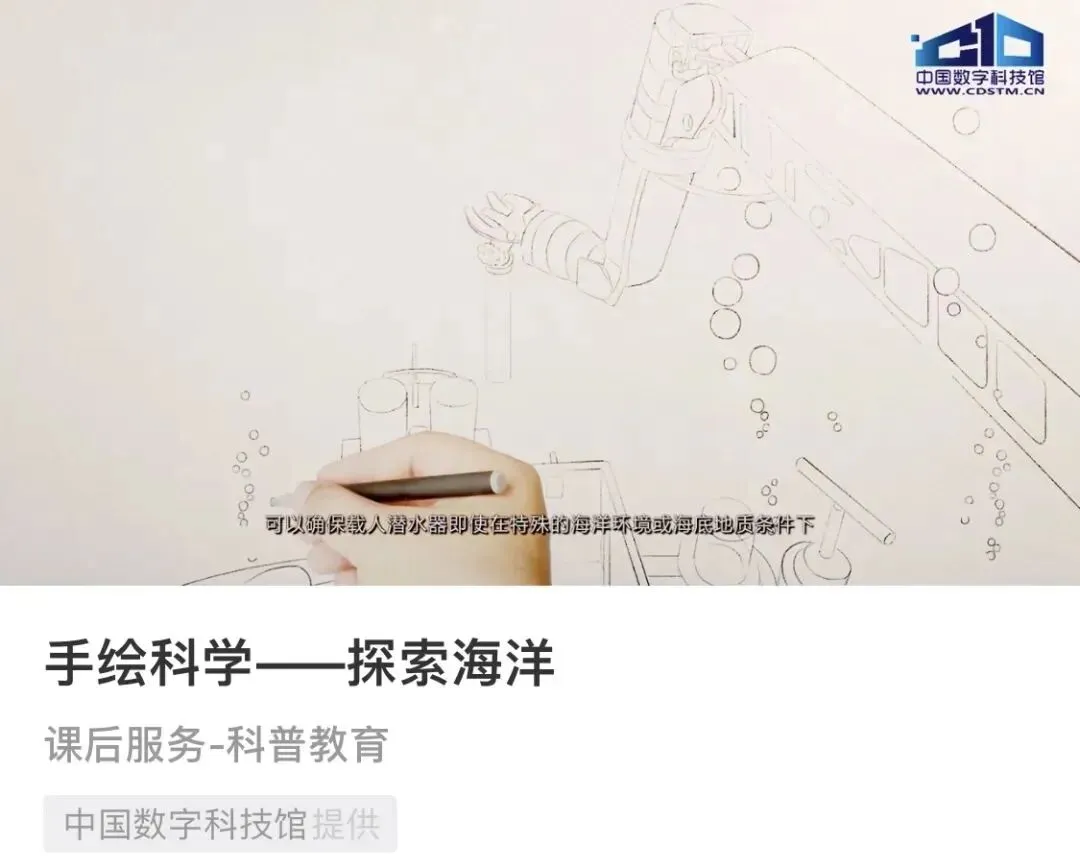 “科普教育”里有个有意思的是,在航天、海洋、地球科学、生命科学里面,能找到一个“手绘科学”,这个是中国数字科技馆提供的,整个视频就是边手绘边讲解,或者展示手绘图,形式还是挺新颖的。