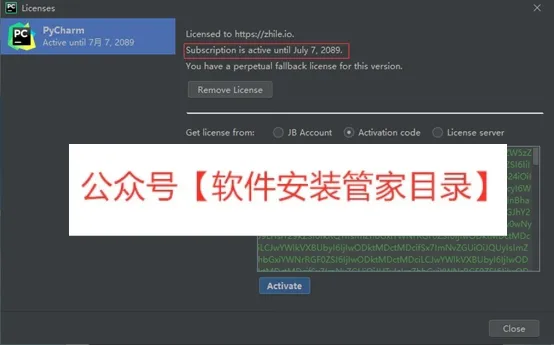 18. 激活方式选择“Activation code”然后点击“为Pycharm安装”。
