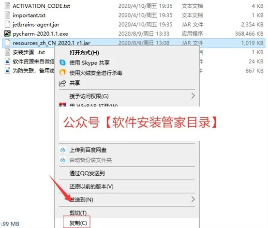 a. 关闭软件,鼠标右击“resources_zh_CN_2020.1_r1.jar”选择“复制”。