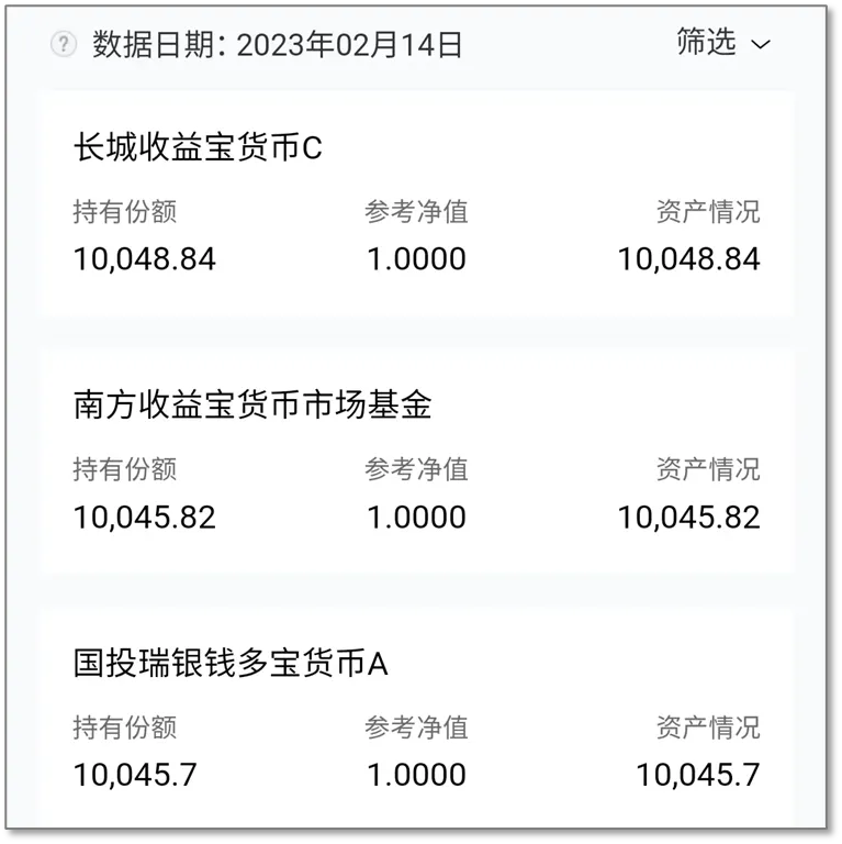 比如有些朋友买过很多货基,里面还剩几块钱,不妨取出来(需要去原平台赎回,APP只供查询不能交易),减少基金账户数量,便于日后管理。