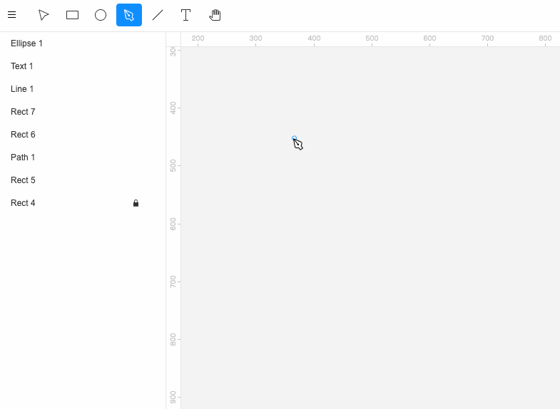 做钢笔工具遇到了一个问题,就是它没有 x、y、width、height,都是基于 Path(三阶贝塞尔曲线)计算出来的。