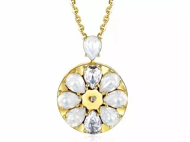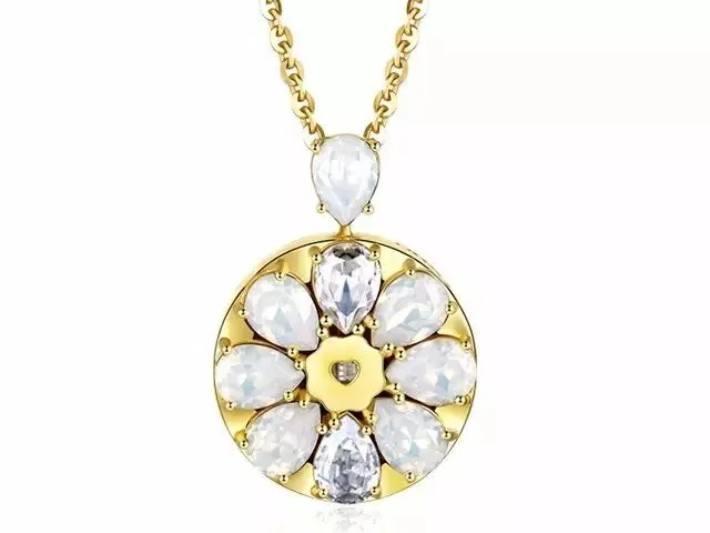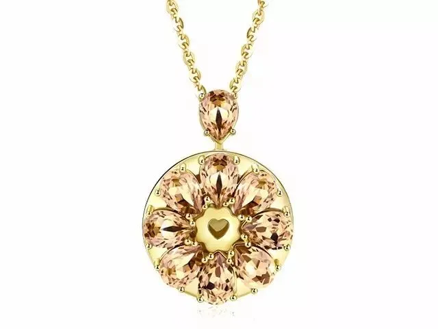 绽放系列的吊坠,表面镶嵌施华洛世奇水晶,925银镀18K金,链子可调节长度。