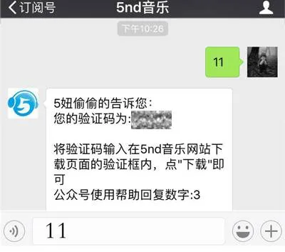 如下图,进入5nd音乐公众号,输入“11”获取验证码。