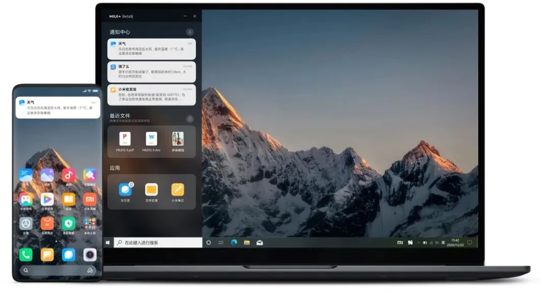 此外,在小米十周年发布会,小米也推出了秒享协作功能,搭配支持的小米设备,手机屏幕可以镜像在笔记本上,同时还可以电脑控制手机。在小米11发布会上,MIUI+的发布,意味着小米手机和任意品牌电脑之间的联动,迈进了一大步。
