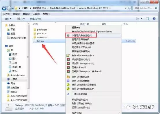 3.选中【Set-up】可执行文件,鼠标右击选择【以管理员身份运行】。