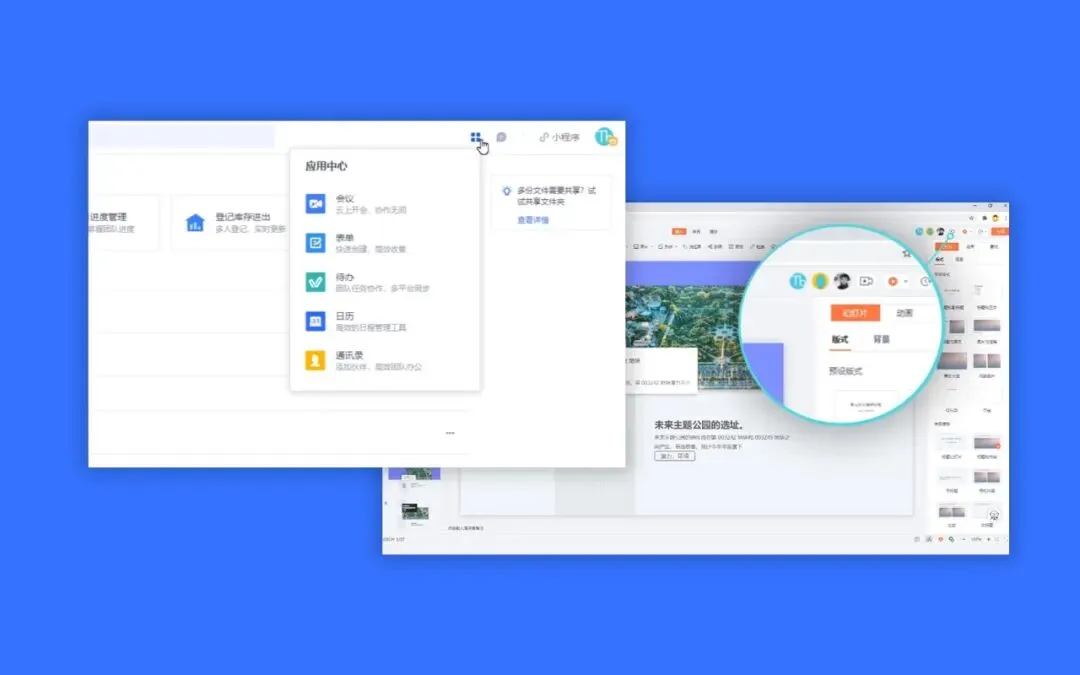 按照这种方式,在金山文档中,多人可以同时完成一份策划案、一份 PPT,相比本地文档,效率提升不止数倍;你甚至可以通过这里进入远程语音会议,和所有人一起激烈讨论,瞬间变成高效的云端会议室。