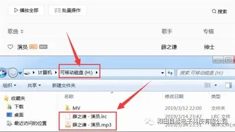7、打开U盘可以看到已经把刚才的歌曲包括歌词成功下载到了U盘上。