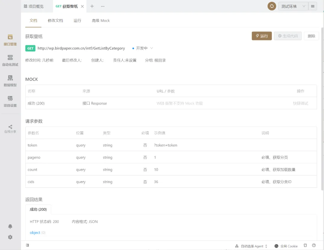 不管是测试还是写接口文档,都非常方便,输入链接直接运行,Apifox会把数据的请求字段自己分类好,只需要写上备注即可,分享给别人,查阅起来也一目了然。