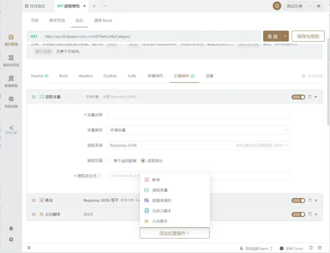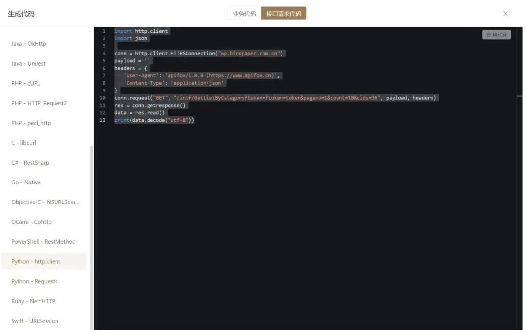除此之外还能在获取数据后,添加后置操作,生成各语言的代码,在学习其他编程语言的时候,就不用担心获取数据怎么写了。