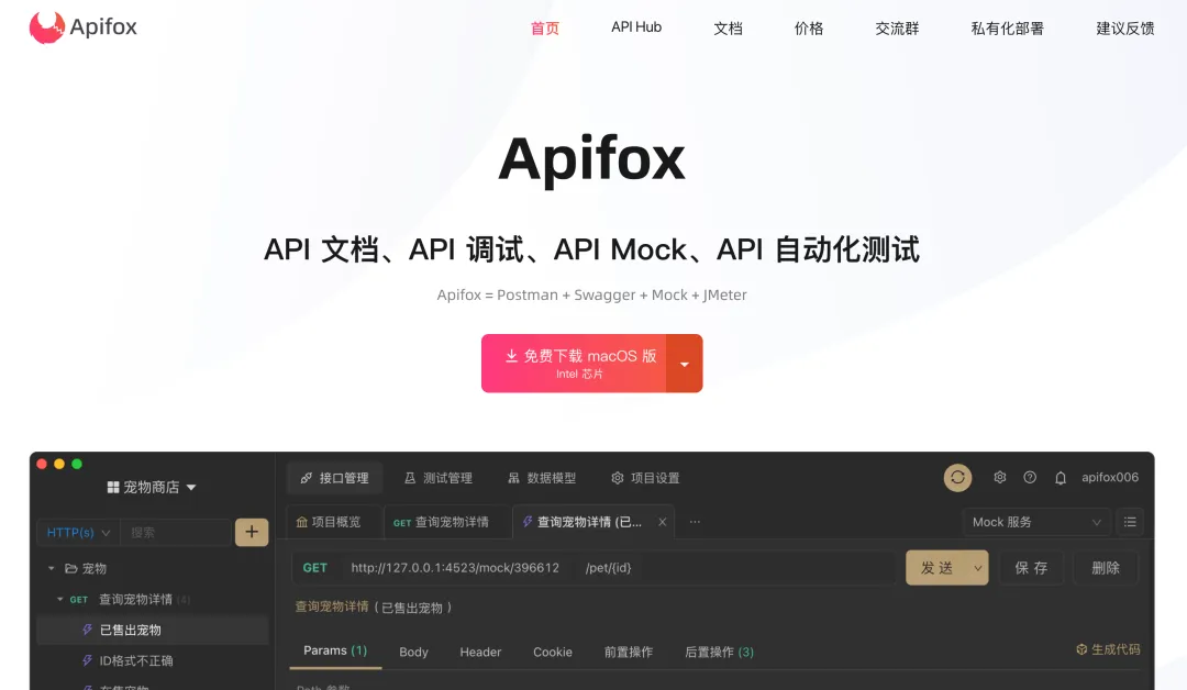 Apifox 是 API 文档、API 调试、API Mock、API 自动化测试一体化协作平台。
