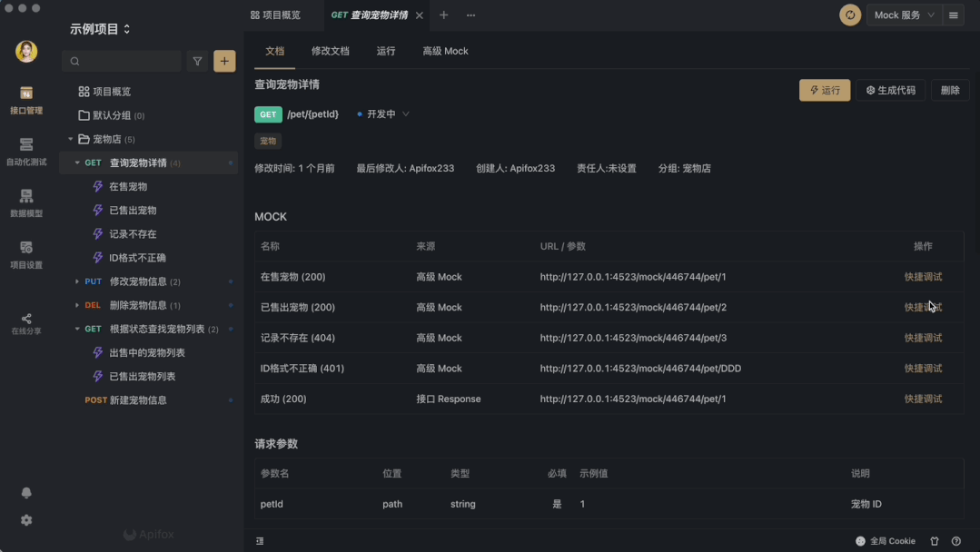 并且,如果只是这一个接口就还好,当有多个地址源的时候,这些接口起来,或者很久以后阅读的时候就比较麻烦了,这时候就可以掏出 Apifox 这款神器,各种接口管理,调试,文档生成一条龙服务!