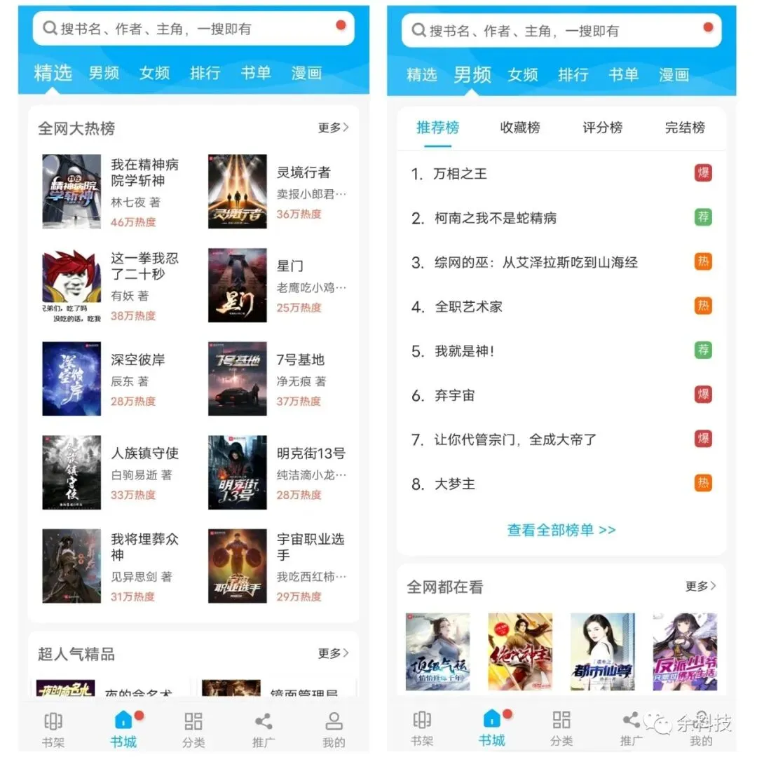 1、各类榜单分类精细,而且永久免费,一键搜索就可以找到自己想要阅读的小说资源