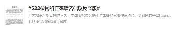 但就在最近,在中国版权协会所举办的报告会上,唐家三少等522名网络作家联名发布了《保护网络文学版权的联合倡议书》,关于网络文学的侵权问题再一次引发热议,#522位网络作家联名倡议反盗版#的话题也迅速登上了微博热搜。