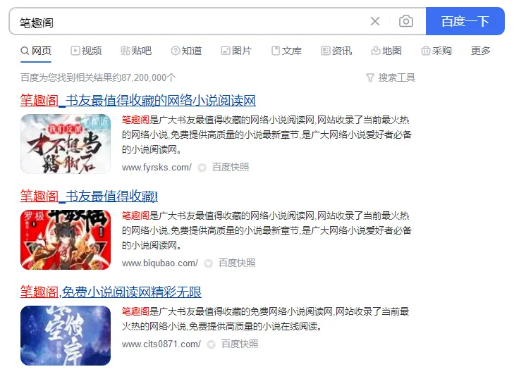 正是由于这种原因,笔趣阁开始产生了疯狂的“裂变”。凭借笔趣阁所谓的名气,盗版平台不用养活作家、也不用花钱推广,就能坐收大量的用户。