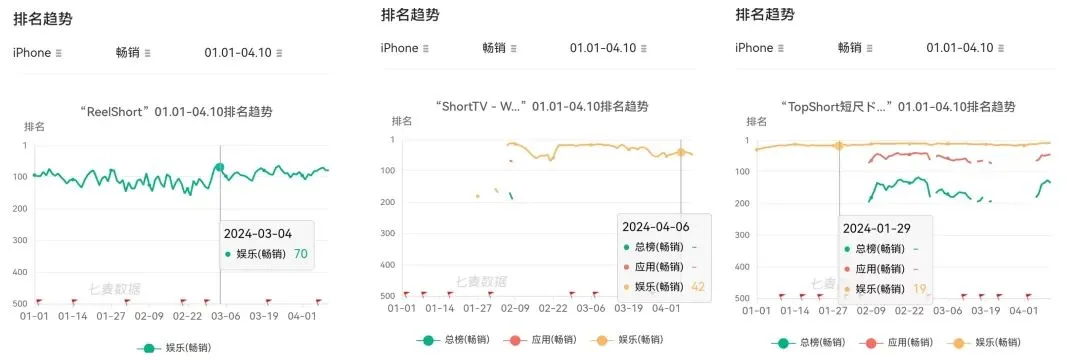 TopShort、Reelshort、ShortTV日本市场畅销榜排名 来源/七麦数据