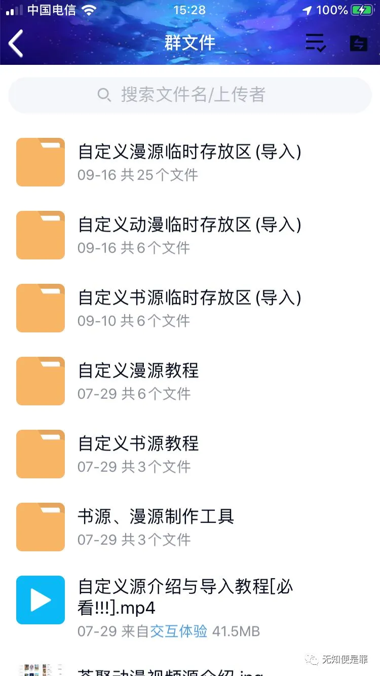 我们需要到官方的QQ群的群文件里面,可以看到他给大家准备了些书源和图源。我们进去下载然后选择其他应用打开。选择拷贝到荟聚动漫或者云端书城就可以了。新添加的就会在软件左下角显示了。书源也是这样操作的,都需要从群文件里面进行导入。