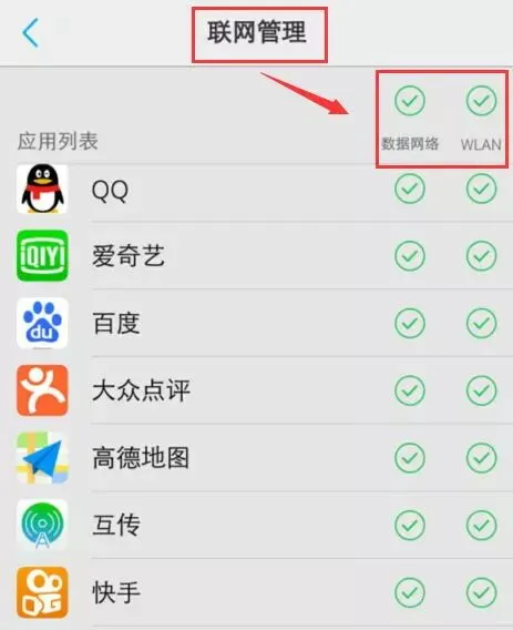 当然,除了可以关闭网络去广告,对于某些你希望只使用WiFi、不使用数据流量的APP,也可以在这儿设置。